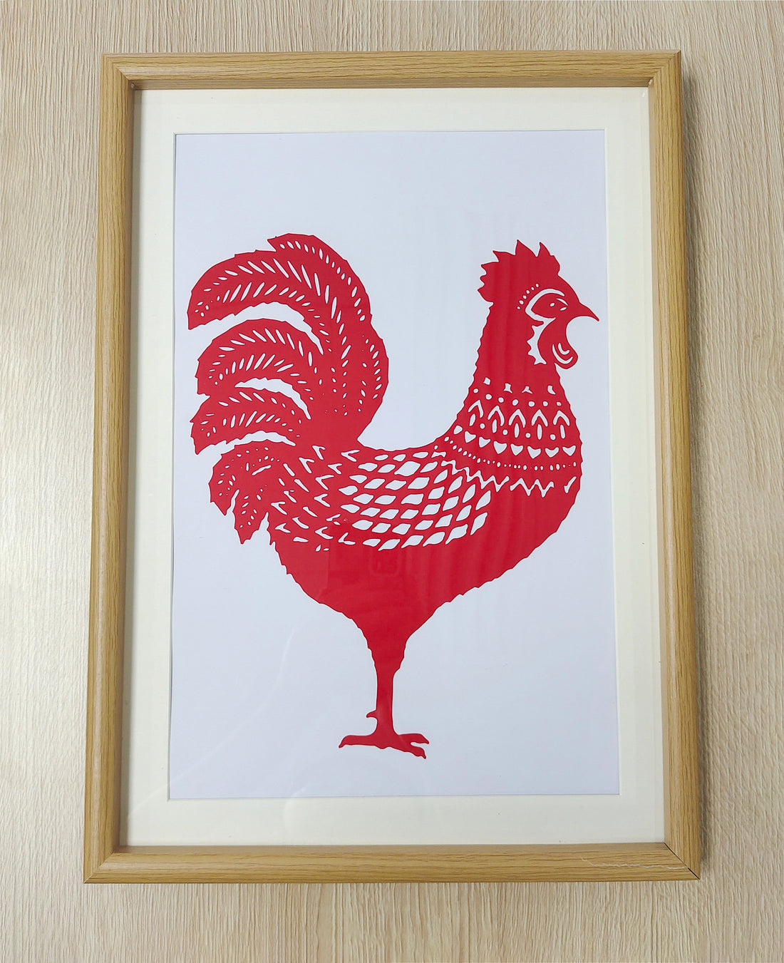 Chinese Traditional Paper Cutting of the Golden Rooster's Dawn Personalized Custom Painting Designed and Engraved to Order Made and Shipped from United States