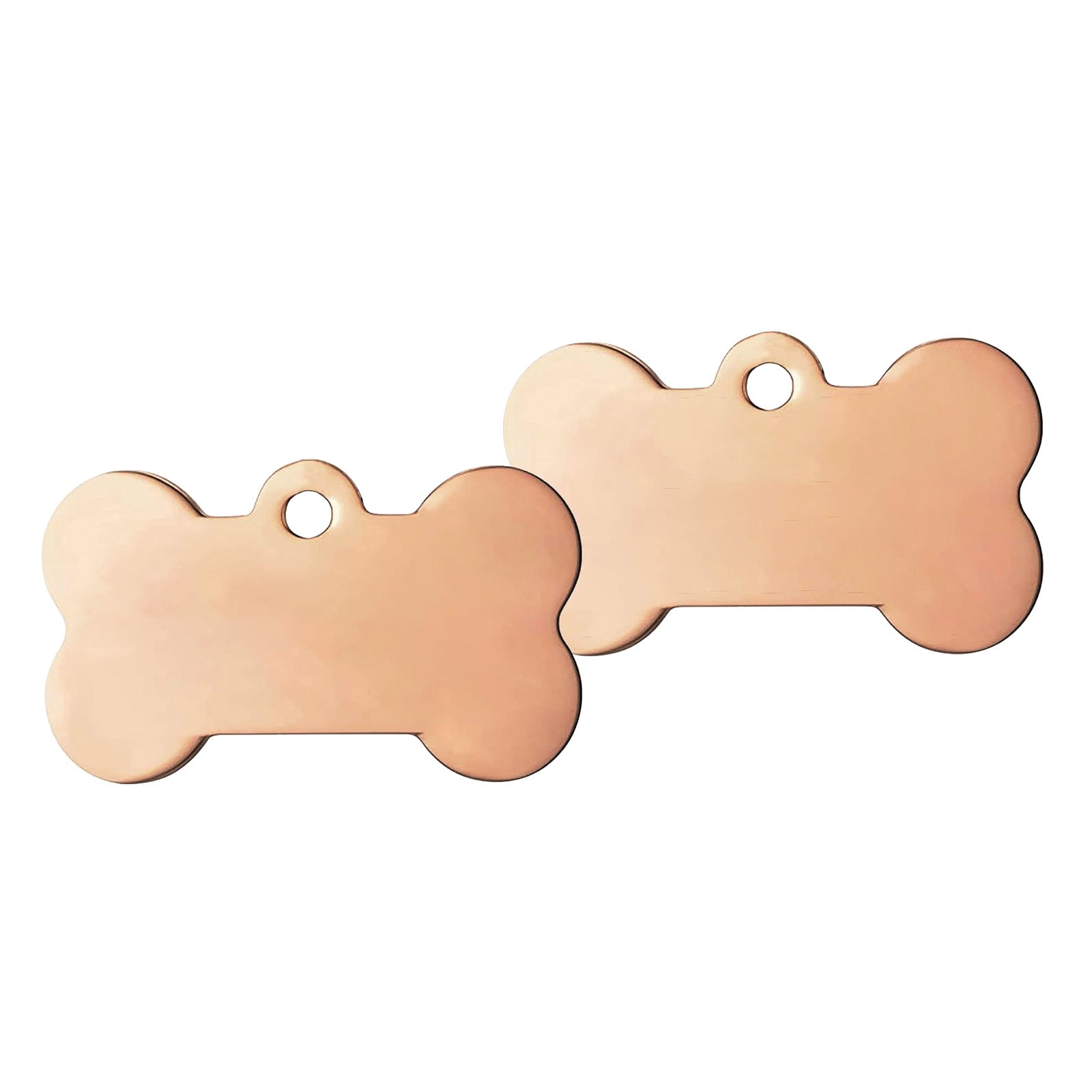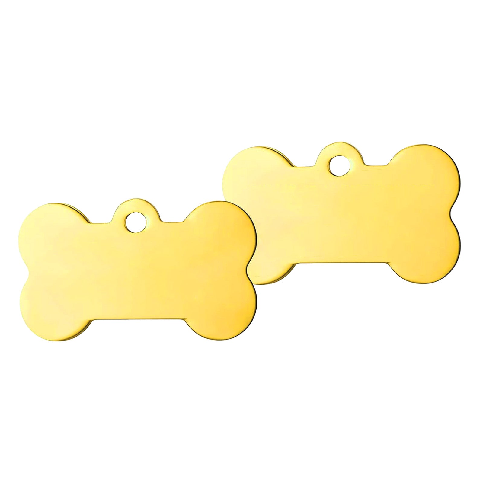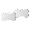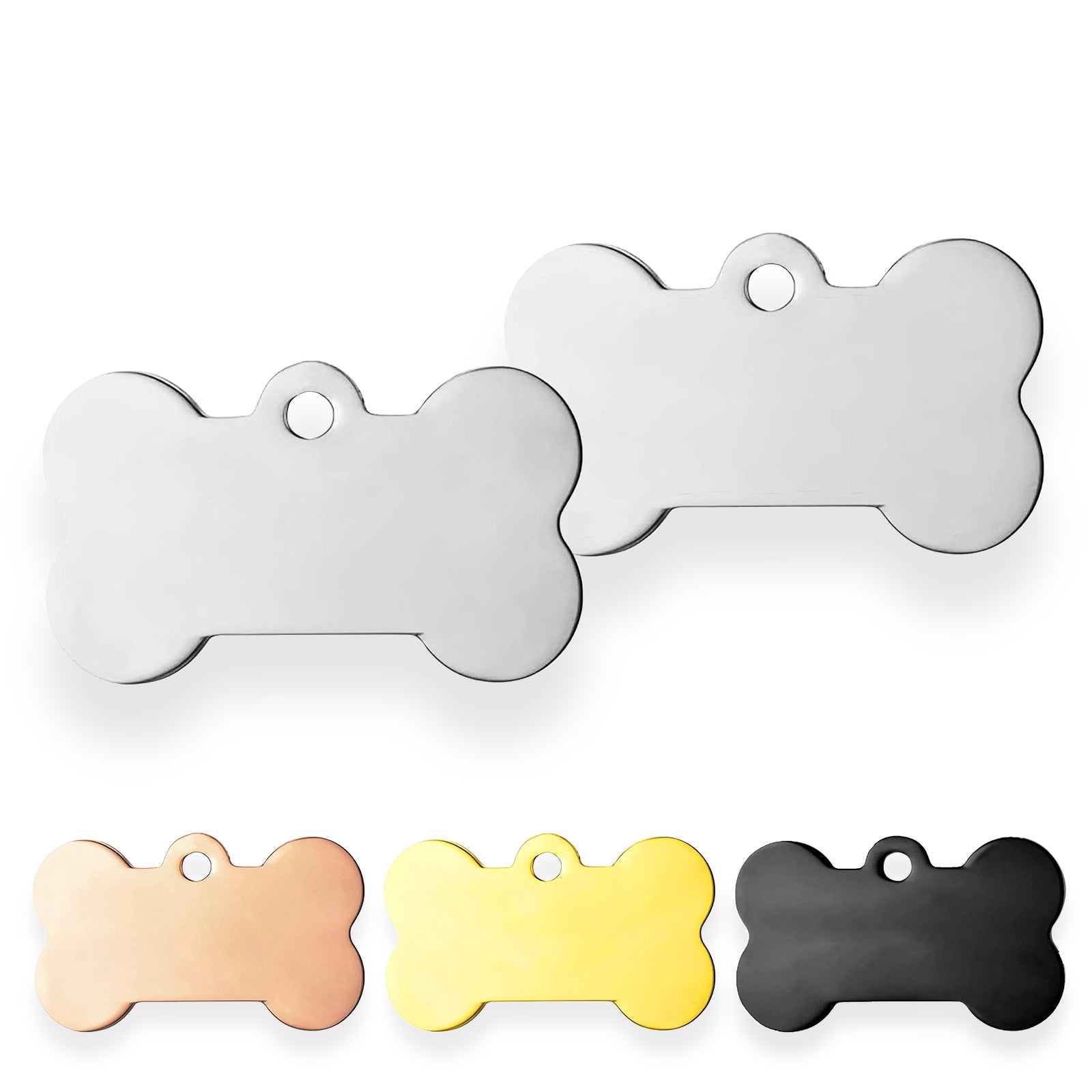 Bone-shaped pet tags, personalized with pictures, text, and made of stainless steel.