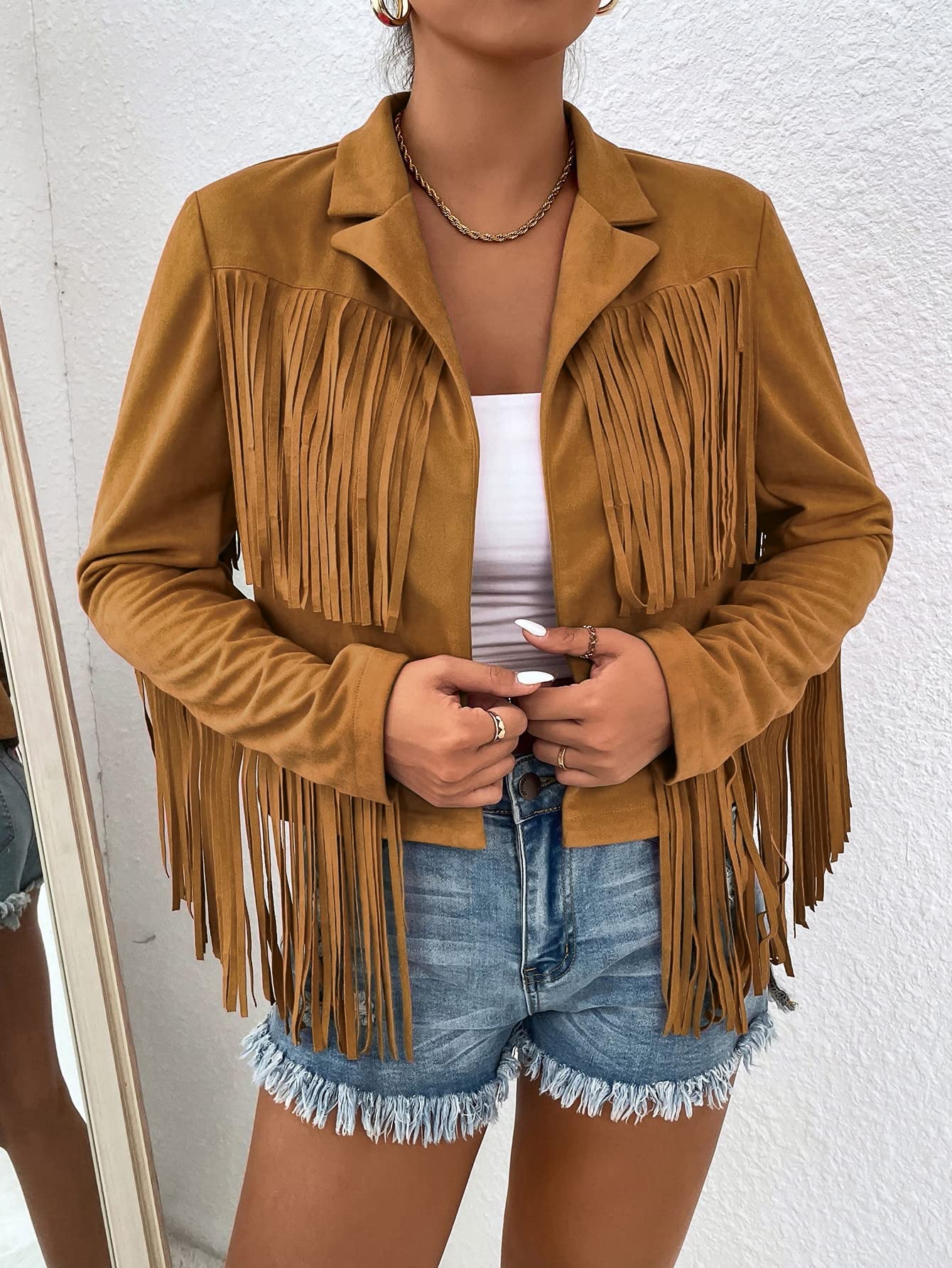 Jackets for Women Fringe Trim Open Front Jacket Jackets for Women