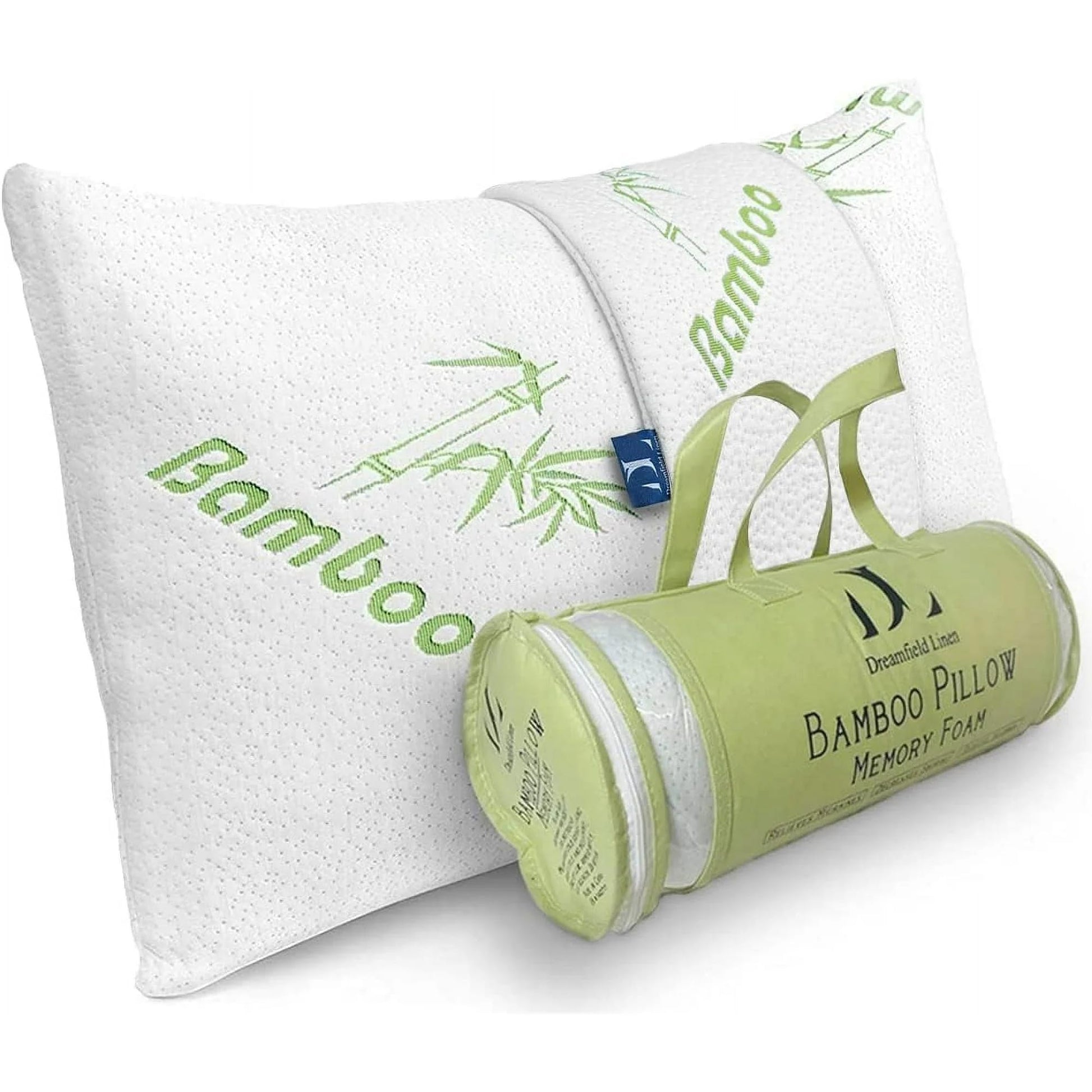 Find your comfort level! ️ Are you having a hard time getting to sleep? Maybe it's time to get rid of your old, worn-out pillow and invest in a memory foam pillow! Shredded memory foam pillows are soft enough to conform to the shape of your head but supportive enough to keep your neck and back aligned properly. ️ Meanwhile, the pillow case is made from rayon derived from bamboo and is soft. We hope you notice an immediate difference in your level of comfort and your quality of sleep. ️ Memory foam is unique in its tendency to expand and fluff up in warmer temperatures and then compress in cooler temperatures. This quality enables these pillows to be adjusted to either a firm pillow or a soft pillow. If you prefer a soft pillow for sleeping, just put our shredded foam pillows in the dryer on a low setting for a few minutes. If you prefer a firm pillow or an extra firm pillow for sleeping, allow the pillow to compress down for that extra support you need.Washable Each pillow comes with a washable of cover. Bounce-Back Shredded Memory Foam: Unlike pillows with down feather, down alternative, latex, foam or fillings, our bed pillows won't go flat and will offer years of neck and back support.