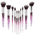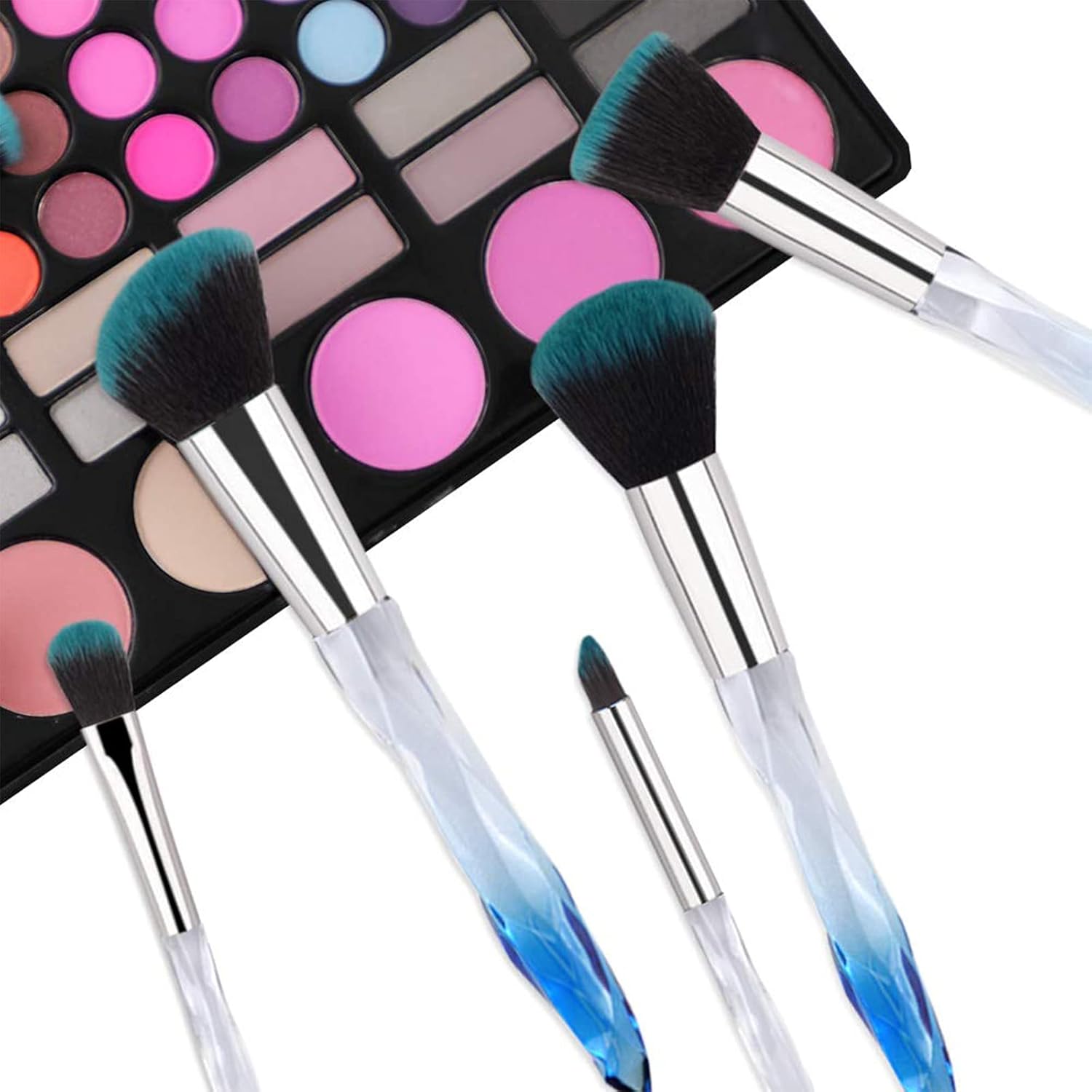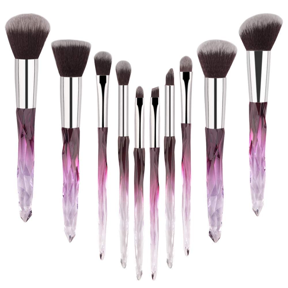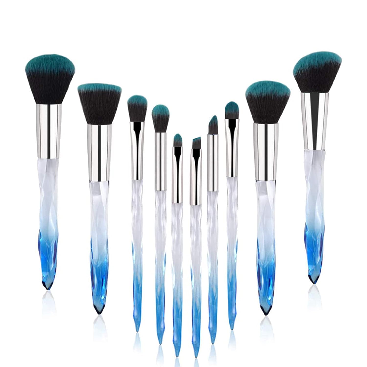 Yuwaku Makeup Brushes Professional - 10pcs Premium Synthetic Foundation Blending Blush Set Powder Eyeshadow Brush Set Light Blue Transparent Crystal Handle Cute Make Up Tools